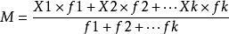 設原始數據為被分成K組,各組的組中的值為X1,X2,...,Xk,各組的頻數分別為f1,f2,...,fk,加權算術(shù)平均數的計算公式為: