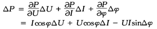 當U、I、φ變化很小時(shí),有功功率變化量△P相對當U、I、φ未變化時(shí)P的變化率為: