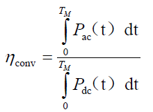 轉換效率是指在規定的測試周期TM內,光伏逆變器在交流端口輸出的電能與在直流端口輸入的電能的比值,計算公式如下所示: