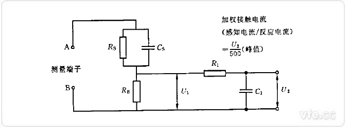 圖1示:加權接觸電流(感知電流或反應電流)測量網(wǎng)絡(luò )