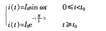 式2中,I0為電流最大值;T為電流脈沖底寬。放電電流曲線(xiàn)見(jiàn)下圖3。t<t0負載電流呈正弦變化;t≥t0負載電流呈指數變化。