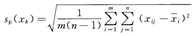 若對每個(gè)被測件已分別按n次重復測量算出了其實(shí)驗標準偏差si,則m組測得值的合并樣本標準偏差sp(xk)可按公式12計算: