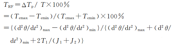 在規定的條件下,電機一轉內輸出轉矩的變化,通常表示為轉矩變化的峰-峰值的1/2與平均轉矩之比。根據控制電機術(shù)語(yǔ)解釋?zhuān)@個(gè)比值我們稱(chēng)為轉矩波動(dòng)系數Krt,用下式1所示百分數表示為: