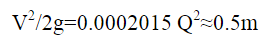 動(dòng)能損失水頭V2/2g對于不同管徑為流量的函數,不同管徑的數值見(jiàn)表2。