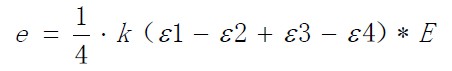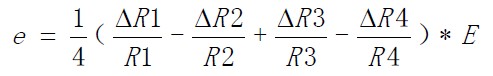 若四枚應變片完全相同,比例常數為K,且應變分別為ε1 、ε2 、ε3 、ε4,則上式可寫(xiě)成下面的形式: