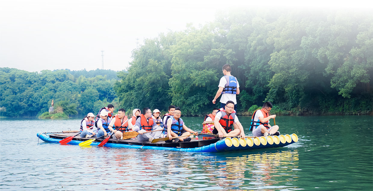 下午的竹筏挑戰賽,考驗的是大家團隊合作力,在鼓手的指揮下,各位漿手整齊劃一,在各位成員的共同努力下,獲得了第二名的成績(jì)。在竹筏水戰的時(shí)候,各位男同事積極擋在女同事前面,迎戰各方攻勢。即使最終依舊難逃濕身狀態(tài),但每個(gè)人臉上都洋溢著(zhù)歡樂(lè )。
