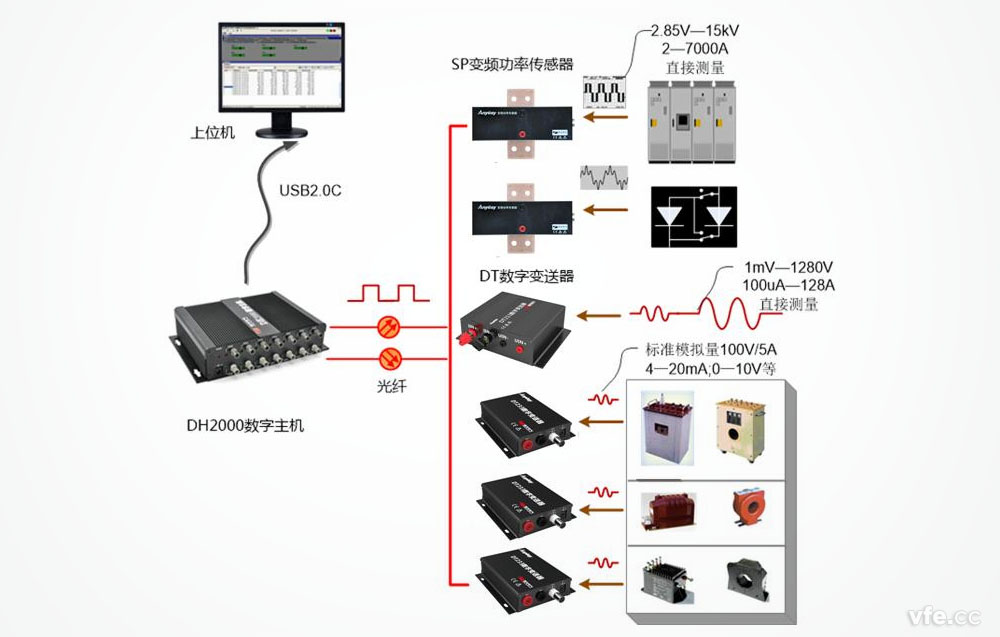 在SP系列變頻功率傳感器、DT系列數字變送器內部將被測電量數字化,沒(méi)有信號傳輸環(huán)節的損失與干擾,并方便網(wǎng)絡(luò )化、智能化應用。同時(shí)光纖傳輸具有很強的抗干擾能力,在廣泛使用變頻器、整流器等強電磁輻射場(chǎng)合,系統準確度不會(huì )受傳輸線(xiàn)路及現場(chǎng)干擾的影響,安裝要求低,測量準確度高。