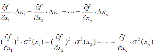 即各分項對測量誤差的總的作用是相同的,但給分配的誤差在數值上是不相同即: