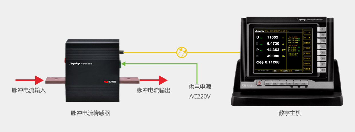 ICSA脈沖電流傳感器測量原理及其簡(jiǎn)單,將脈沖電流傳感器串聯(lián)至測量回路中測量脈沖電流,同時(shí)將測量的模擬信號轉換成數字信號通過(guò)光纖傳輸至數字主機進(jìn)行數據處理、顯示和儲存,脈沖電流傳感器采用AC220隔離電源供電。